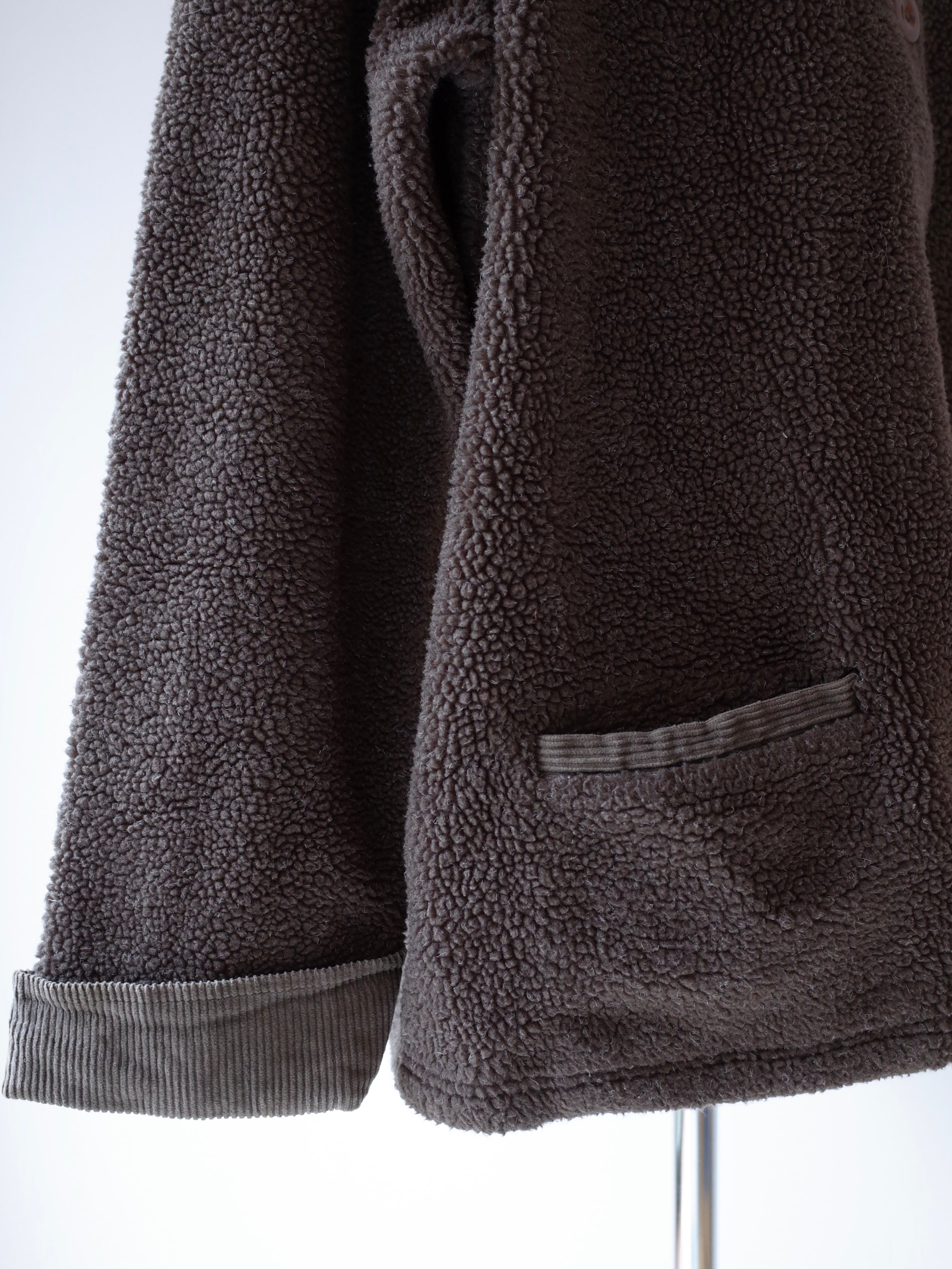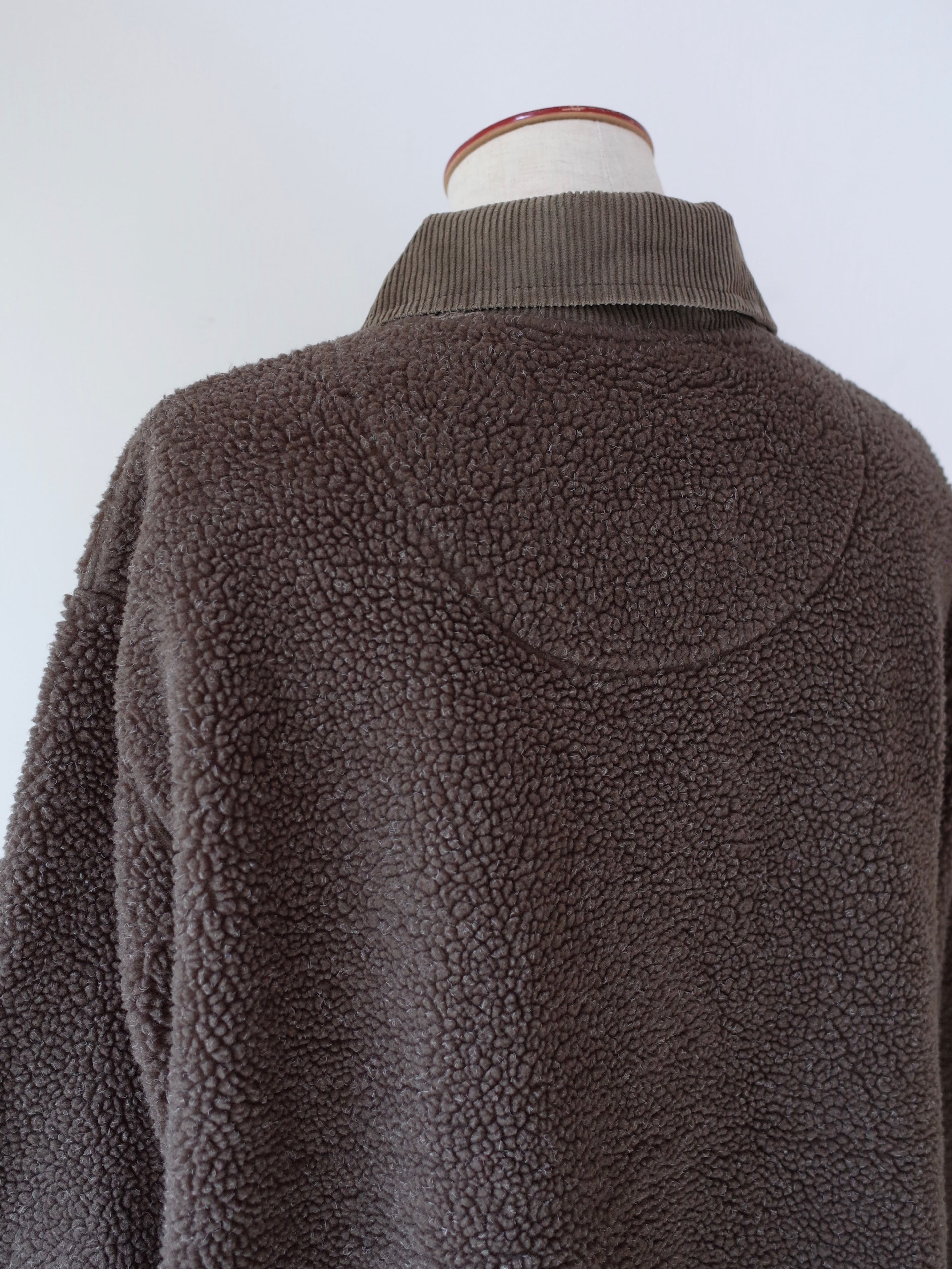 コーデュロイの襟と袖口が可愛いフリースジャケットです。ゆったりとしたサイズ感で、サラッと羽織るのにちょうどいい一枚。