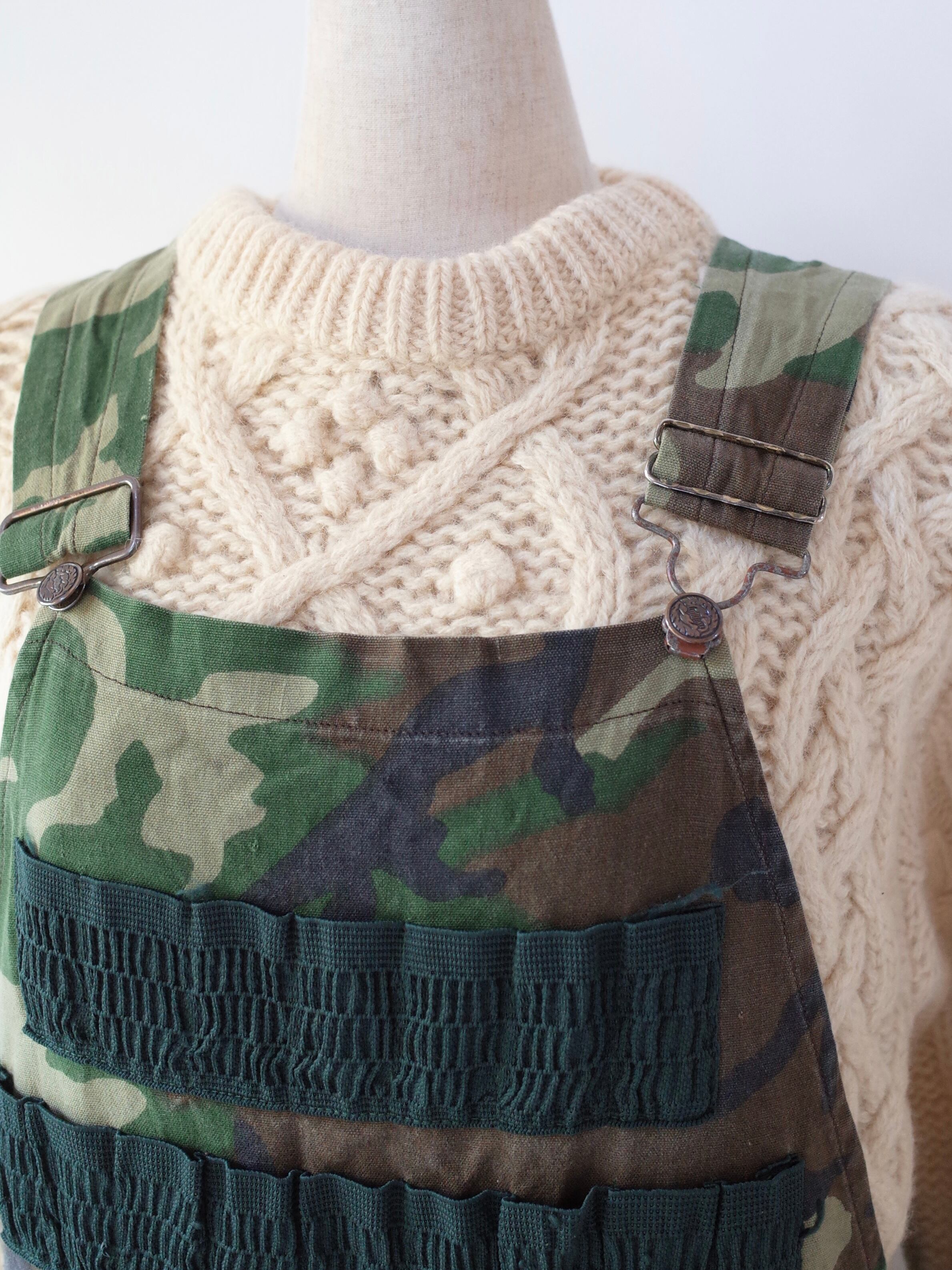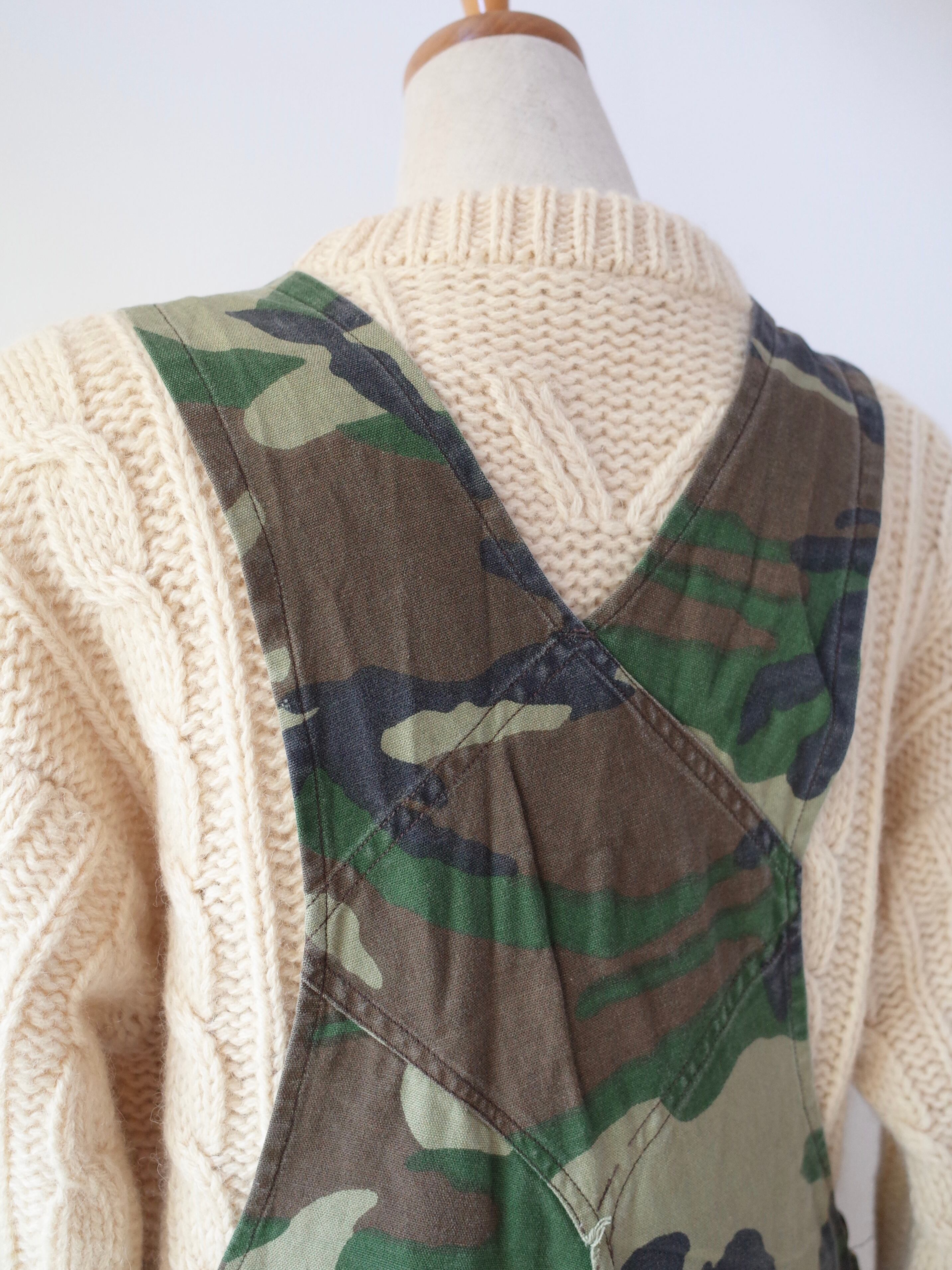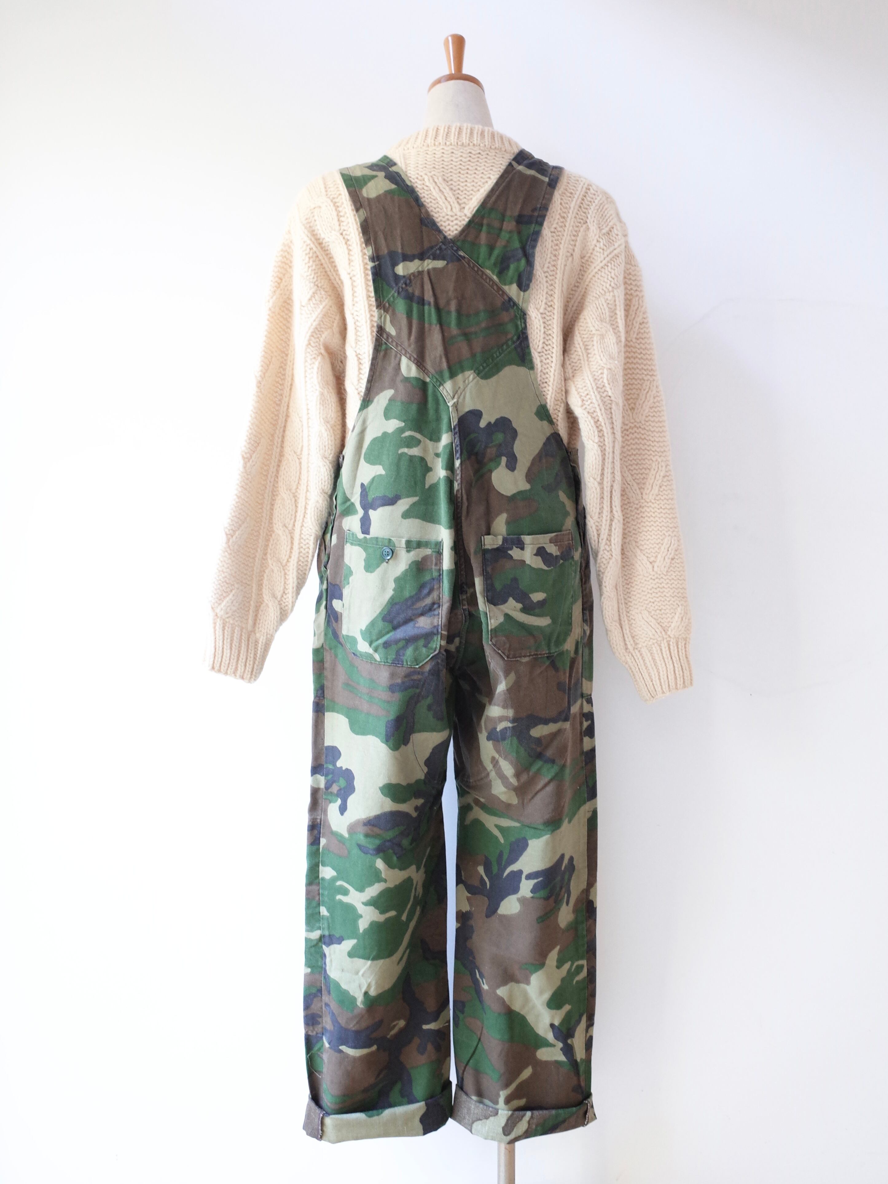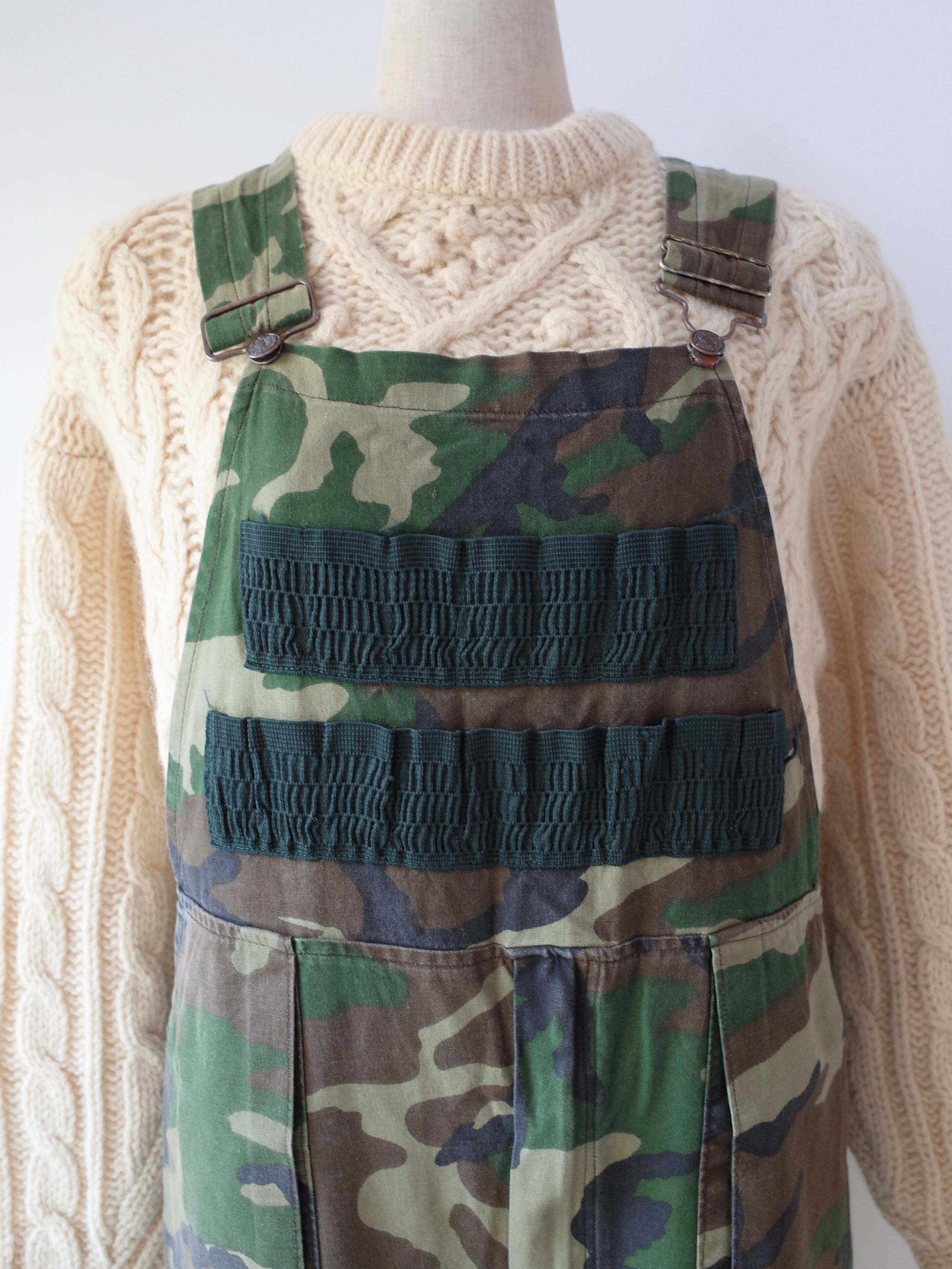 RED HEADのオーバーオールです。ハンティングブランドらしいカモフラージュ柄で胸には銃弾を入れるポケット。ダブルニー構造で、ヒップ部分も二重に補強されています。薄手の生地感で履きやすく、雰囲気ある一着です。