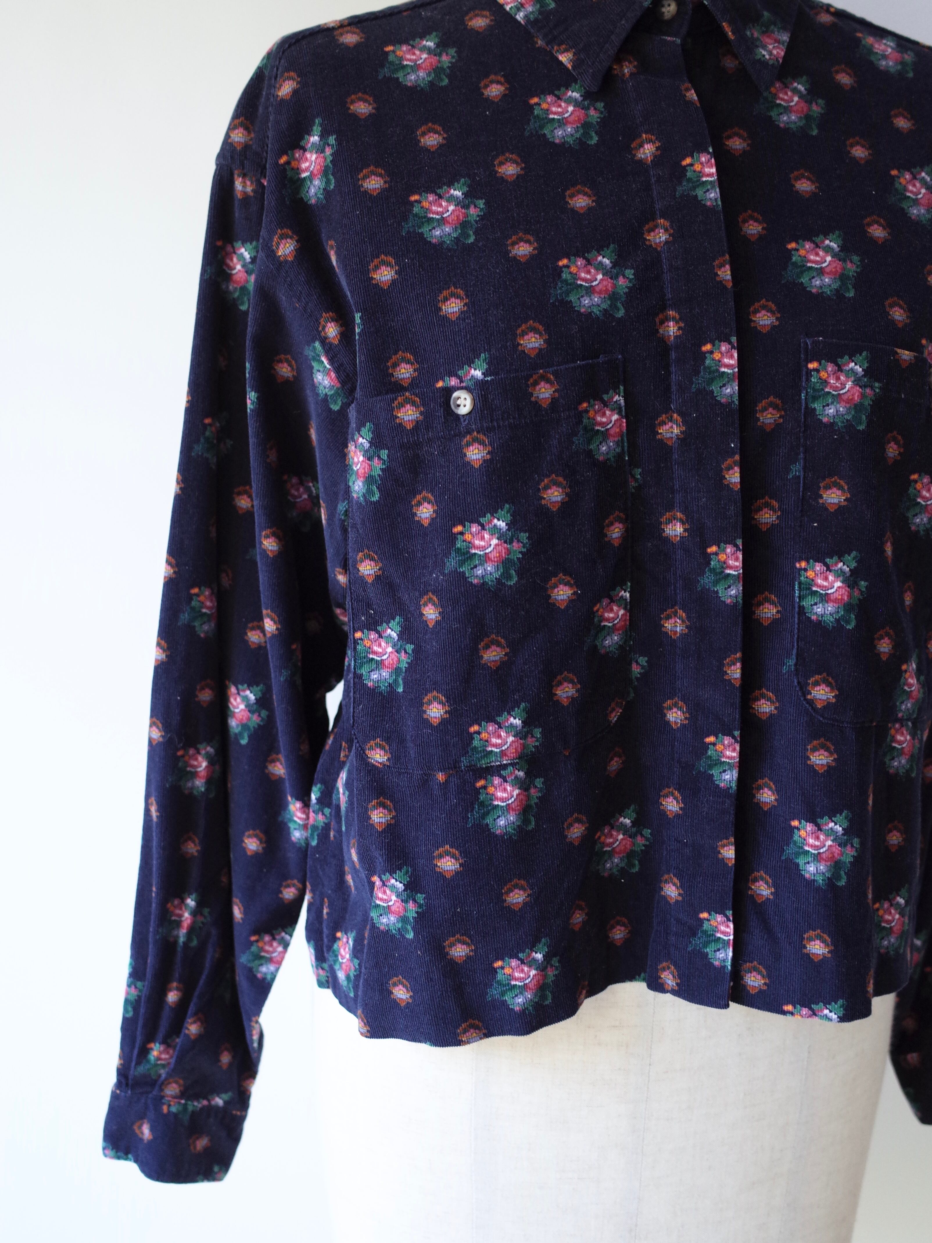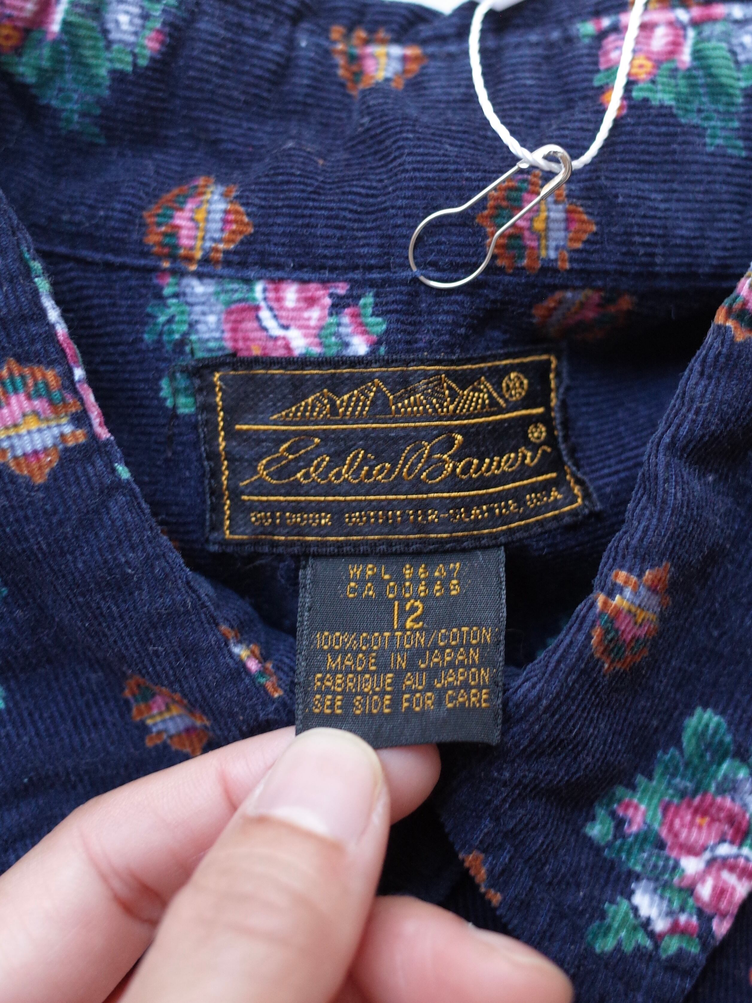 80〜90年代製Eddie Bauerの花柄コーデュロイシャツ。丈が短くカットされ、リメイクされた一枚です。